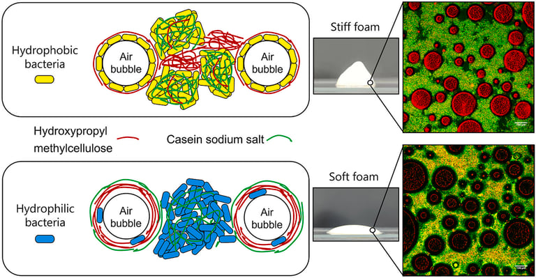 兩個菌種不同的表面特性為泡沫提供了不同的結構:其中一種具有親水性,會吸引水分形成薄弱的連結,從而產生柔軟如泡沫的成分;另一種菌種則會排斥水分,更類似於脂肪,會形成相對硬挺的泡沫質感。讓細菌鮮奶油得以拉出與真正打發奶油般的尖端,並且保持形狀完整。除了食用之外,在作為食物裝飾上也能有很好的表現。