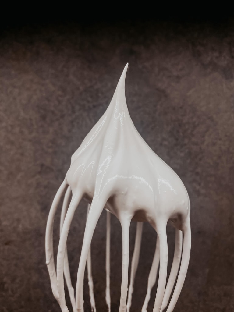 鮮奶油是生牛乳擠出後頂層脂肪含量較高的部分,而打發鮮奶油顧名思義就是——打發它。藉由快速攪拌將空氣打入鮮奶油中,進而形成綿密如氣泡但又堅挺的質感。