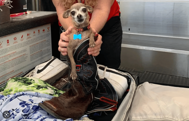 這不是寵物誤入行李箱首例,差點被帶上飛機的還有一隻吉娃娃。2021年的德州,當時一對夫婦正準備托運行李,地勤卻告知他們的行李超重,而當他們打開箱子時驚訝地發現,一隻約莫5磅(2.2公斤)的吉娃娃,躲在丈夫的一雙牛仔靴裡。