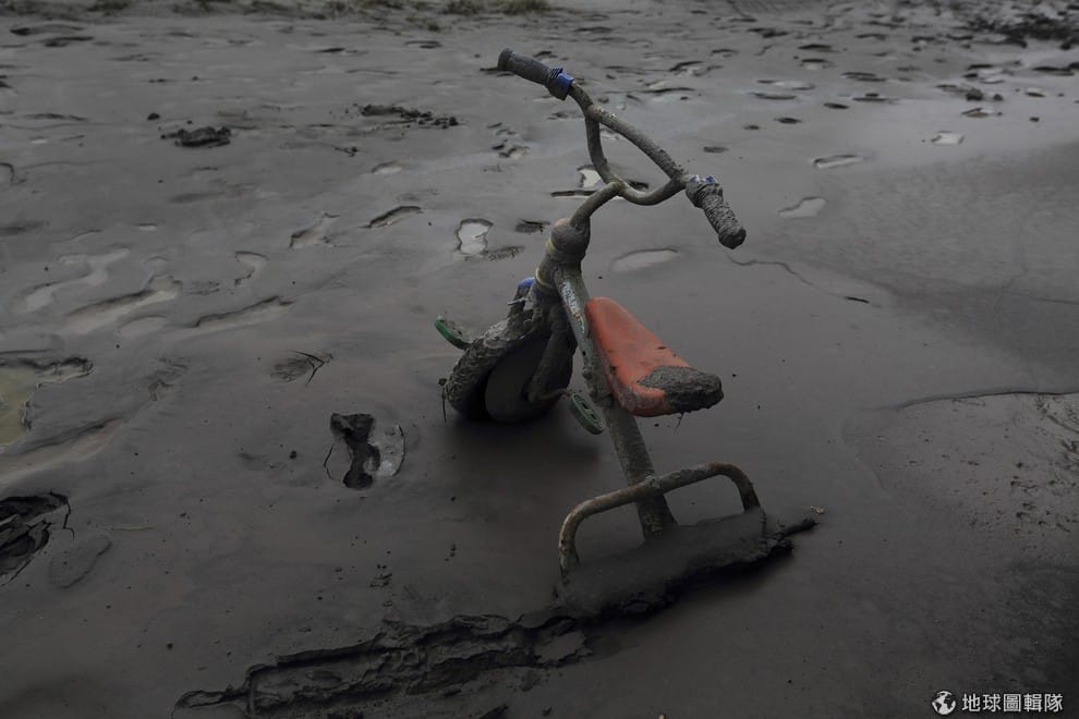 照片中陷在汙泥中的是一輛三輪車,印尼北蘇門答臘省的西納彭火山在周末出現火山噴發活動,大量噴發的火山灰掩蓋了鄰近地區。西納彭火山從去年11月開始出現活動,超過22,000位村民顧及安全必須撤離家園