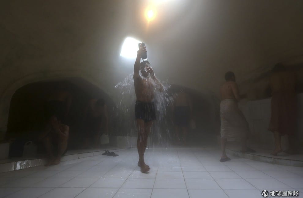 阿富汗的男人們正在喀布爾的澡堂中洗澡,澡堂在當地是相當受歡迎的設施,尤其在冬天時期更可以見到許多人湧入,會有這種現象是因為有許多民眾付不起熱水費用,引起這種現象的原因之一,是當地的相關建設不足所致。
