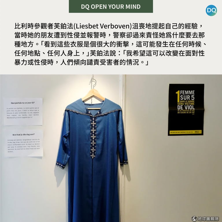 「當你走進這裡,你很快會注意到這些都是大家平常會穿的衣服。」參與展覽策劃、在受害者支持團體工作的肯尼斯(liesbeth kennes)說:「這裡甚至還有一件寫著『彩虹小馬』的兒童T-shirt。這也是殘酷的現實之一。」