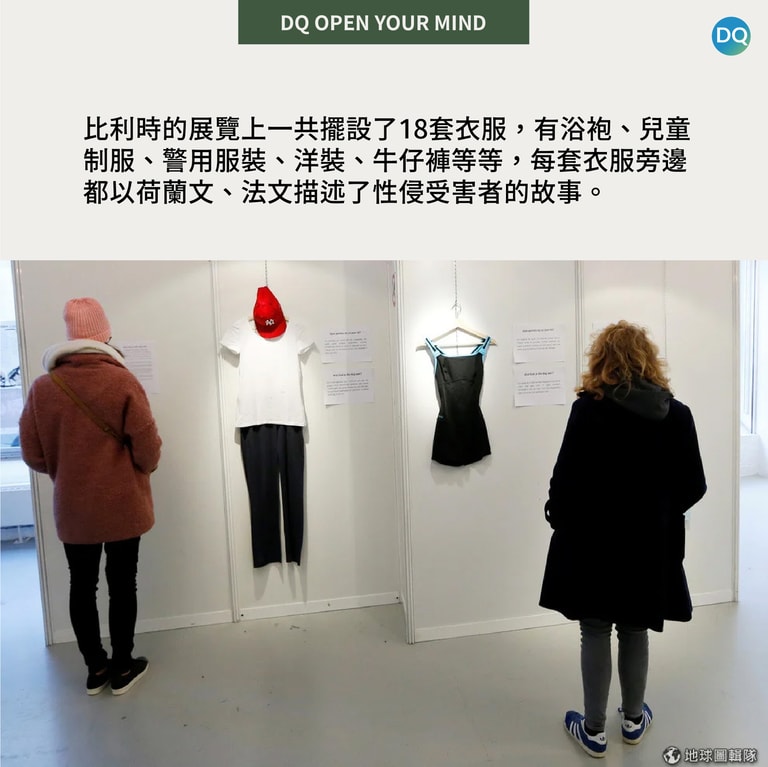 2018年,比利時為了破除性侵案件中,受害者常常被責怪「你為什麼不穿多一點?」讓受害者產生自我懷疑,甚至相信自己得為一部分的性侵或性暴力擔起責任。於是為了強調受害者不需要為任何「挑起」性侵或性暴力事件而受到譴責,傳達「我們想穿什麼就能穿什麼」的理念,比利時團隊舉辦了「你們穿了什麼呢?」(What Were You Wearing)為題的展覽。