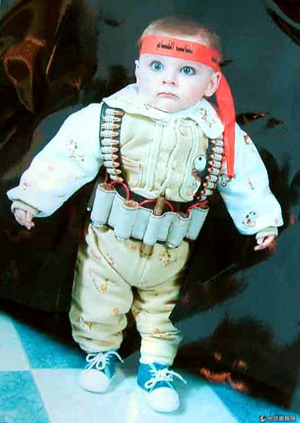 2002年時的以色列反抗軍(IDF)釋出的照片,照片中是一位穿著炸彈背心的寶寶