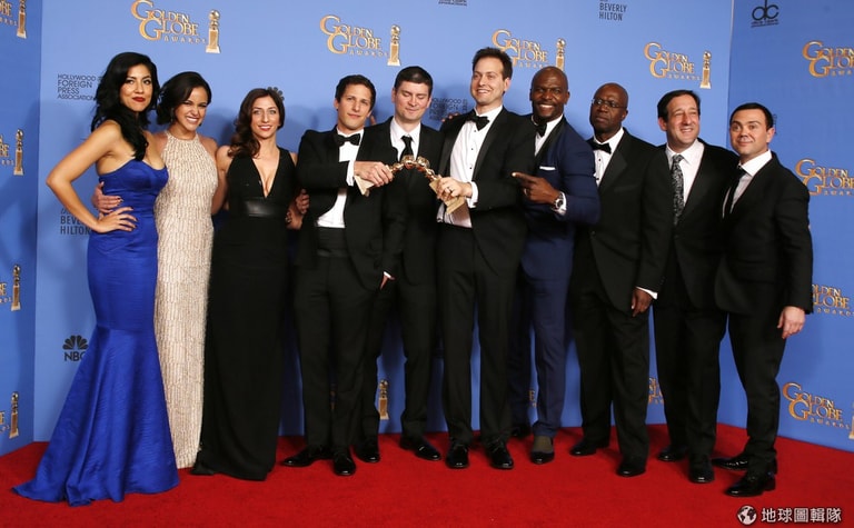 《神煩警探》(Brooklyn Nine -Nine)劇組成員手拿獎座合照
