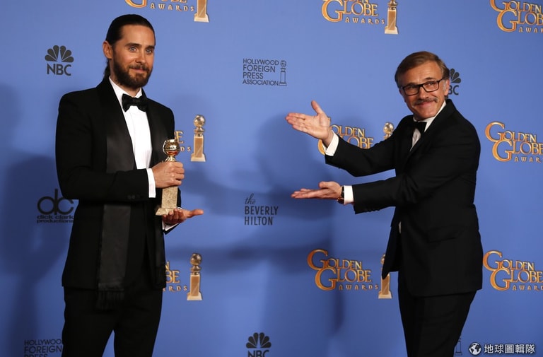 照片左邊手拿獎座的是獲得電影最佳男配角的傑瑞德雷托(Jared Leto)