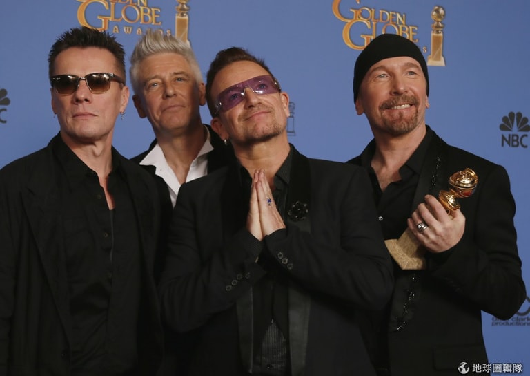 上圖是 U2樂團的成員,他們的歌曲 Ordinary Love獲得最佳電影主題曲獎。