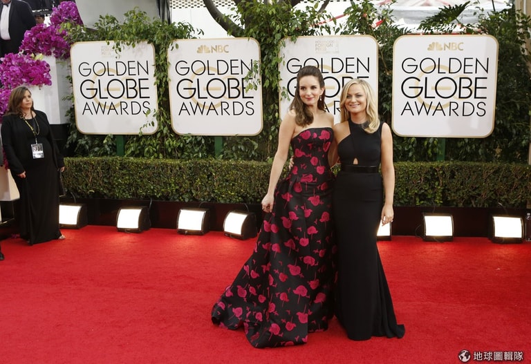 身穿黑色禮服的艾米波勒(Amy Poehler)與蒂娜菲( Tina Fey)共同主持本屆的金球獎典禮。