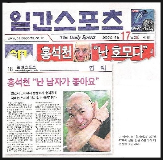 正好在2000年時,南韓知名演員洪錫天,成為南韓首位公開出櫃的藝人,隨即在社會造成一片譁然。他不僅遭到電視台封殺、雪藏,更遭致不少歧視與謾罵。直到2009年以後,我們才又在《強心臟》、《Running Man》等韓綜之中陸續看見他的身影,也成為同志角色的專業戶,在《梨泰院Class》等劇大放異彩。