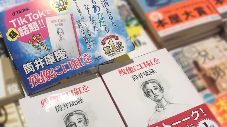 當然,這樣的光景不只是出現在歐美。2021年7月28日,日本出版界「突然」發生令人難以解釋的現象:作家筒井康隆於1989年發表、1995年出版文庫本的小說《塗口紅的殘像》,突然竄上各大的販售平台的排行榜,在日本亞馬遜上更是衝到綜合榜上第9名、日本文學部門第1名。《塗口紅的殘像》也緊急宣布再版3.5萬冊。