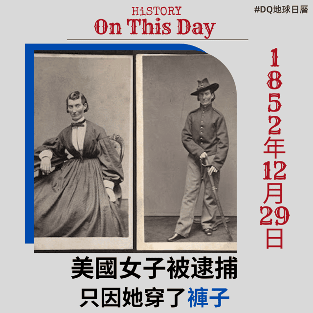 1852年12月29日,一名17歲的女子Emma Snodgrass身穿「褲子」而遭波士頓警方拘捕,這已經不是她第一次因穿著不當而進警局,但這次有點不同,因為她身邊多了一位身穿男裝的Harriet French。當時,各大報社媒體紛紛大肆報導此事,並嘲笑她們是「沒有女性氣質的怪胎」。
