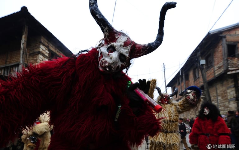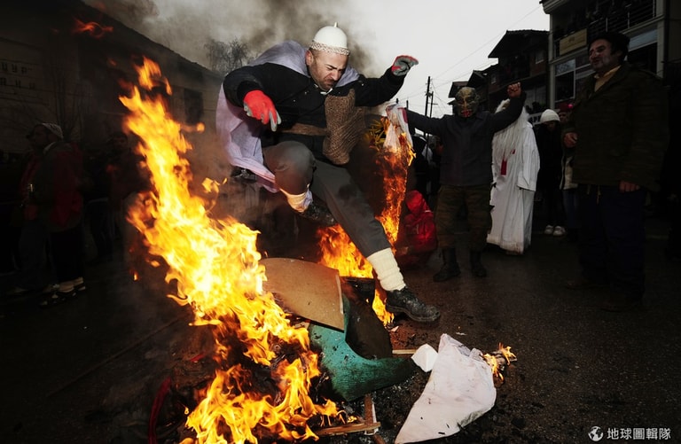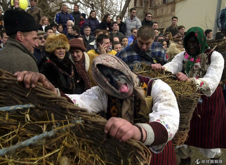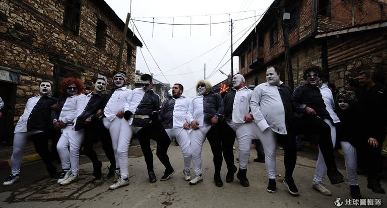 維夫查尼的村民塗黑臉部,表演異教信仰的舞蹈。