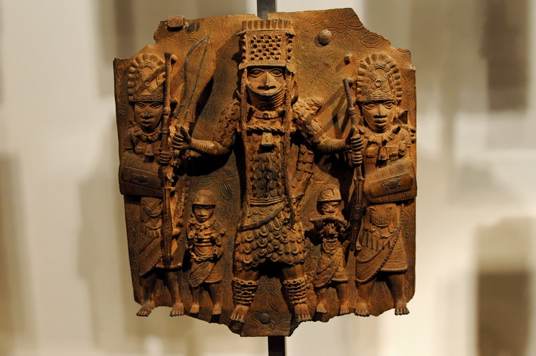 雖是由德國出面返還,但其實始作俑者是英國人。19世紀,英國人入侵西非時,英國士兵將貝寧銅像視為戰利品之一多方攫取擄掠,之後又將這批文物輾轉分售至柏林、漢堡、斯圖加特、科倫等各地博物館。最終才由德國出面,蒐集並歸返奈及利亞。
