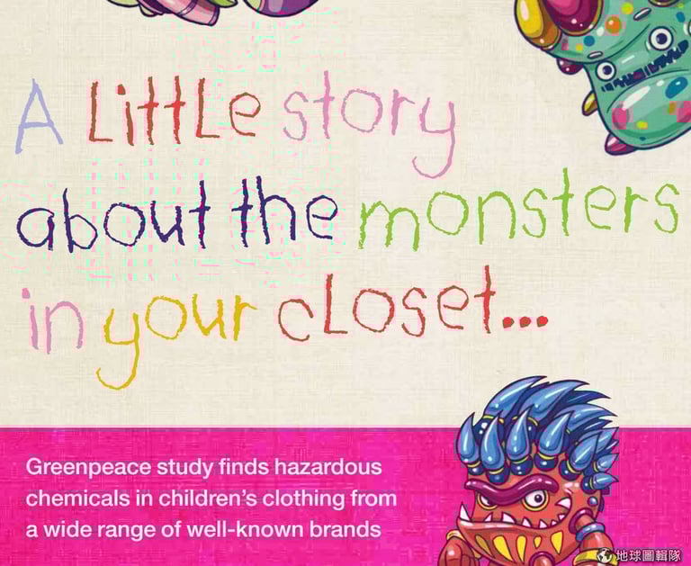 在艾斯特大學的協助下,綠色和平組織從全球25個國家蒐集到82個樣本進行檢測,僅有6件衣物未檢出化學殘留物質。14號時,綠色和平組織發表了這份名為《在你衣櫃中的小怪獸》(A little story about the monsters in your closet)的報告。