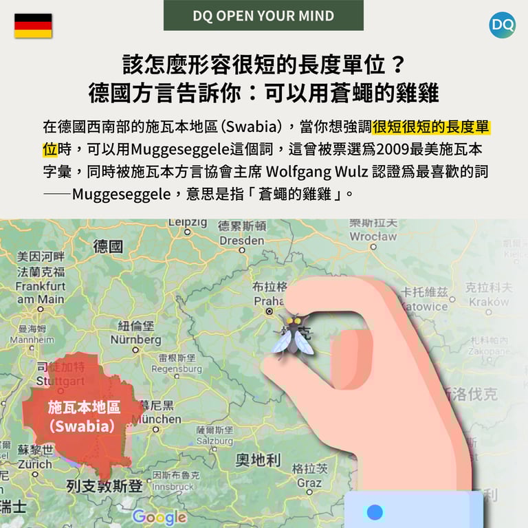 地球上的奇怪單位詞 地球圖輯隊 文化 陳愷昀 2023-02-04 2023-02-04 bookmark_border 德國用蒼蠅生殖器作為最短的長度單位?因為文化與生活環境不一樣,各個國家都有自己獨特的度量單位,DQ情報員蒐集了世界各國那些奇奇妙妙的單位詞,也邀請大家一起來造樣造句! menu目次 keyboard_arrow_down 【德國】Muggeseggele 蒼蠅的雞雞【芬蘭】Poronkusema 馴鹿不上廁所可走多遠【美國】in a New York minute 比美國時間還短的是紐約時間【日本】我家有_個東京巨蛋那樣大!【台灣】再給我一炷香的時間★助DQ一幣之力★ 【德國】Muggeseggele 蒼蠅的雞雞 【芬蘭】Poronkusema 馴鹿不上廁所可走多遠 【美國】in a New York minute 比美國時間還短的是紐約時間 【日本】我家有_個東京巨蛋那樣大! 【台灣】再給我一炷香的時間 單篇文章贊助 定期/年度贊助 我們為您在DQ飛行船預留了VIP位子,期待您登船贊助DQ 日本 台灣 芬蘭 美國 時間 紐約 單位 馴鹿 蒼蠅 德國 全球 延伸閱讀 收起全部 keyboard_arrow_down 成為宇宙笑柄的定義 地球上的一公斤是多少? 如果地球是一盆藍莓? 芬蘭出現發光馴鹿 動物暴走不受控 日達美樂馴鹿外送服務失敗 「我不覺得抱歉」德國假名媛行騙紐約遭判刑 我們為什麼喜歡這類故事? 飛天坐騎養成地 蘇格蘭高地上的聖誕馴鹿 《紐時》珍奶文被罵爆 什麼才叫美國「主流」文化? 芬蘭「獵殺野狼」行動 挪威323隻馴鹿亡 閃電搞的鬼 【地球放映室】《紐約大國民:珍雅各》「人」才是城市的主體 分享至社群 close Line DQ Twitter Page Facebook DQ Fans-page 設定個人化文章閱覽樣式 close text_fields 字體大小 2 nightlight 黑暗模式