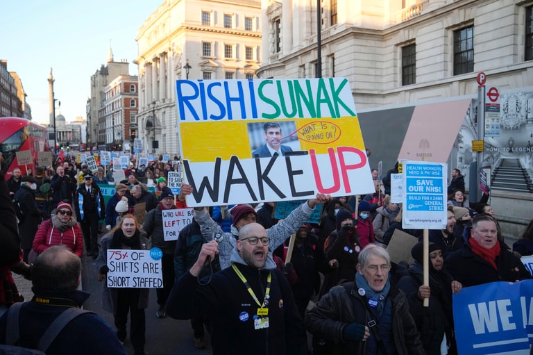 隔天,在倫敦的罷工行動中,皇家護理學院(Royal College of Nursing)秘書長柯倫(Pat Cullen)也透過公開信向蘇納克政府喊話:「如果政府願意提供的加薪幅度能夠與威爾斯相同,或者能像蘇格蘭當局一樣,同意啟動談判、溝通,願意考慮暫時停止這股罷工浪潮,也可以避免接下來將出現範圍更大、影響更廣的罷工示威。」