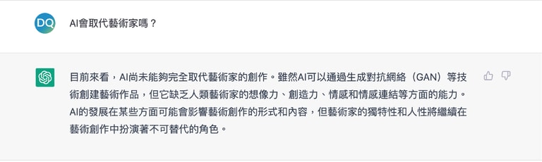 ChatGPT說:目前,AI還無法完全取代藝術家