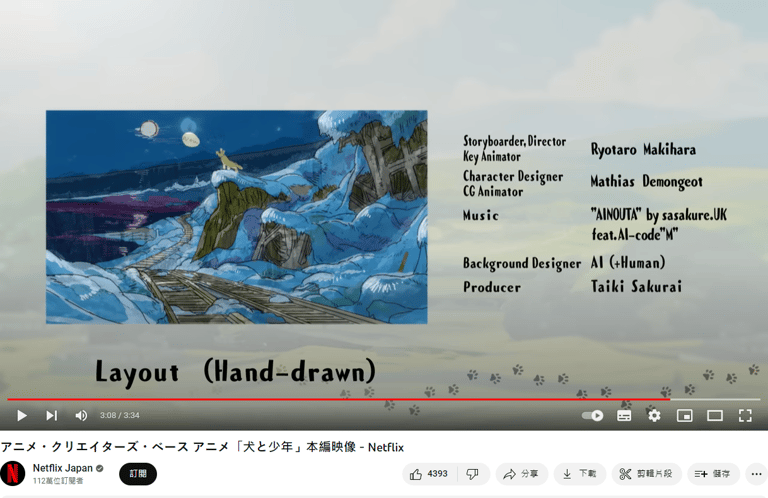 日前,Netflix在日本推出了動畫短片《犬與少年》,影片中大部分的場景皆由AI繪圖而成。
