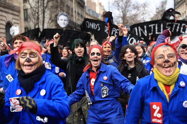 3月7日,法國大批群眾上街遊行,抗議法國總統馬克宏的退休金改革法案,此項法案擬將退休年齡由62歲提高至64歲。