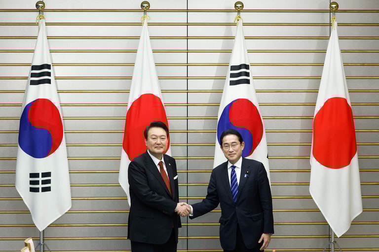 3月16日,日本與南韓兩國領導人時隔12年之久舉行峰會。日本首相岸田文雄(Fumio Kishida)與韓國總統尹錫悅(Yoon Suk Yeol)於東京會面。