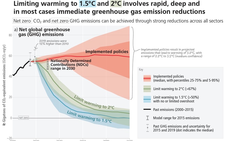 「過去半個世紀之間,溫度上升的速度是兩千年以來最高的,二氧化碳濃度更達到至少兩百年以來的最高水平。」他說。已開發國家應該進一步具體承諾,在2040年之前實現淨零排放(net zero emissions)。