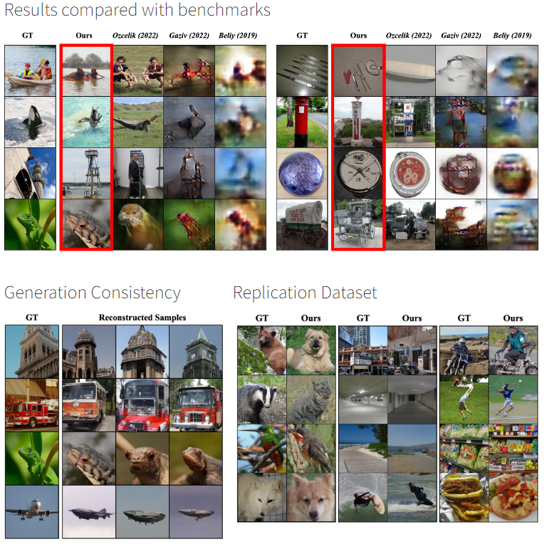 經過這些信號轉換及訓練成像之後,同一位參與者接下來看到新的照片時,會先由核磁共振偵測到腦波,再透過AI模型形成最接近的對應圖像。