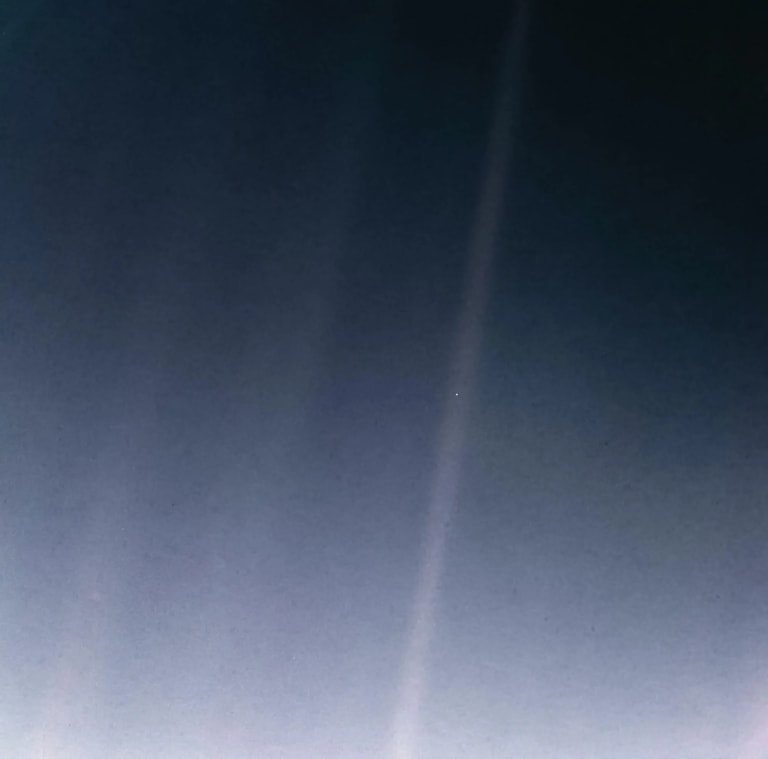 地球上的人們常常拿起手機、紀錄瞬間,但在宇宙運轉之時,也有人為我們的地球留下無數美麗片刻。美國國家航空暨太空總署(NASA)的探索機器人,幾乎無時無刻都在火星、土星周邊,或是更遙遠的太空中漫遊、探索。向著無垠太空探索時,NASA工程師偶爾也會將探索機器調轉方向,回望遠在遠處鮮豔、美麗的藍點。