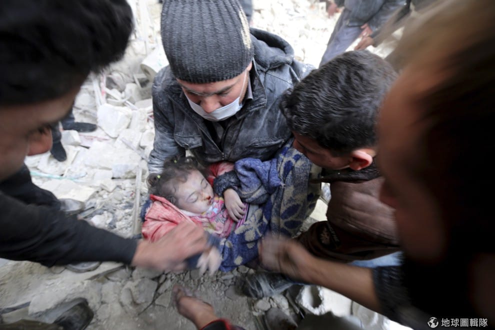 去年年底開始,敘利亞當地又出現政府軍空投桶裝炸彈,許多民眾遭到波及身亡。