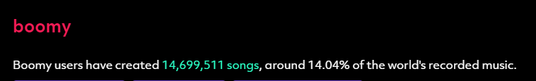 根據Boomy自己統計的數據,他們已經製作約 1450 萬首歌曲,幾乎佔有全球已上架串流音樂總量的14%。