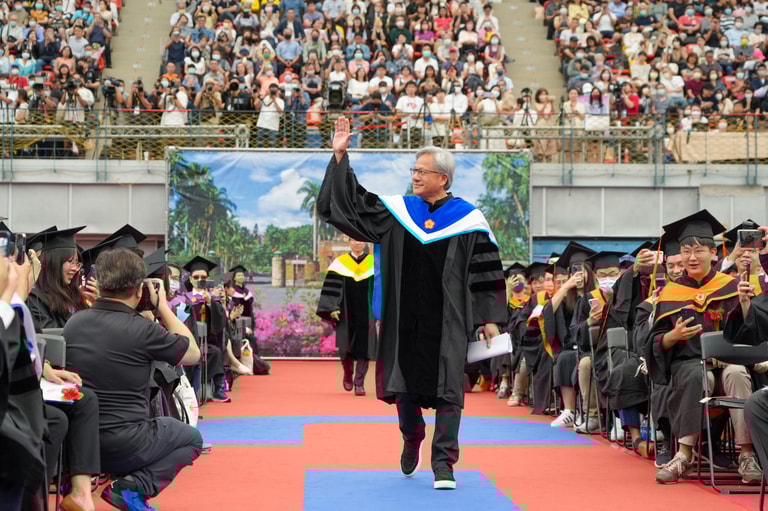 晶片大廠 NVIDIA (輝達)的聯合創辦人暨執行長黃仁勳,最近在台灣掀起一陣「黃仁勳旋風」,一舉一動都成為媒體焦點;27日台大舉行畢業典禮,黃仁勳也應邀擔任致詞嘉賓,透過自己的親身經歷,勉勵台大學生勇敢面對挫折,並朝著自己的理想全力奔跑。
