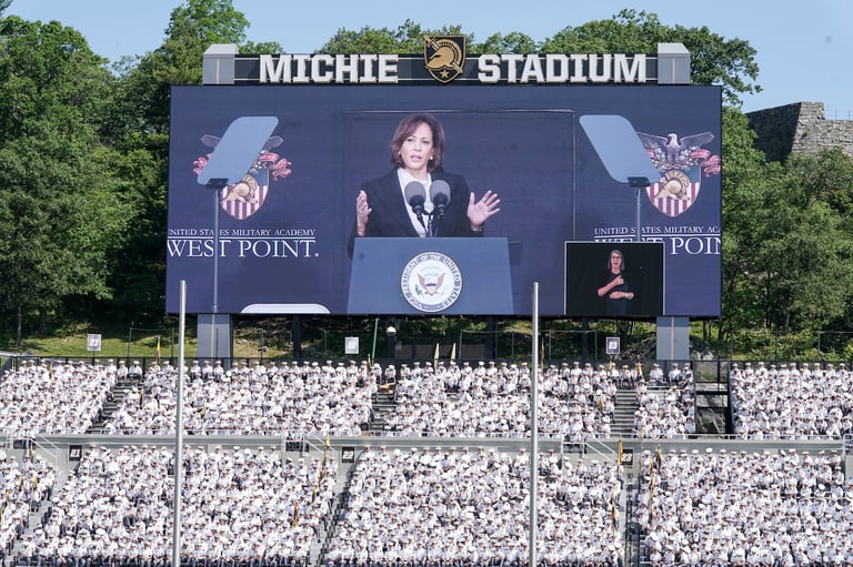 美國副總統賀錦麗(Kamala Harris)在西點軍校(United States Military Academy),畢業典禮上致詞,成為西點軍校創校200多年來,首位在畢業典禮上演講的女性。