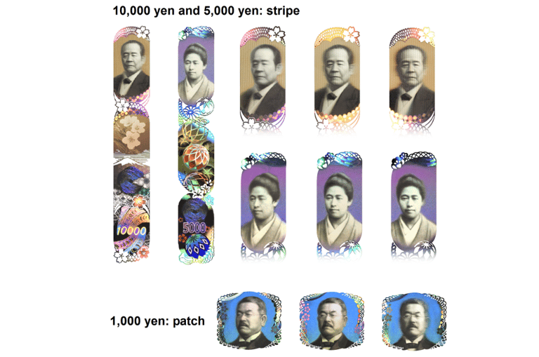除了鈔票上的全新陣容,日本政府這次還在新鈔上引進獨步全球的防偽技術——「全像攝影」(Holography),讓鈔票上的肖像看起來是立體的,且傾斜時會隨之轉動;新鈔上也加上新的觸覺標記,可以用觸摸方式辨認不同面額的紙鈔。