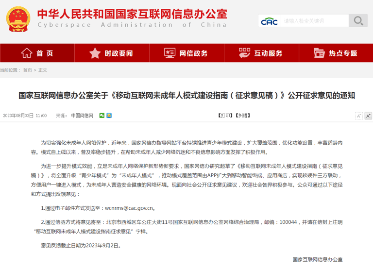 中國針對青少年實施電玩限制已有4年時間,近日,又計畫將限制擴及「手機使用」。中國國家互聯網信息辦公室(簡稱網信辦)於8月2日,公布《移動互聯網未成年人模式建設指南(徵求意見稿)》的草案,表示將擴大禁令的覆蓋範圍,幫助未成年人減少網路成癮,營造安全、健康的網路環境。