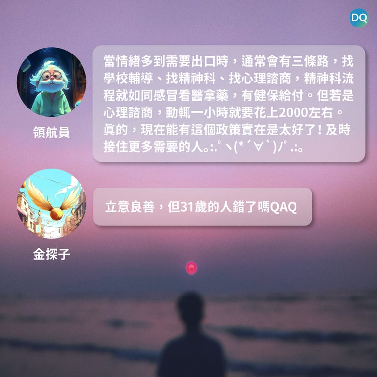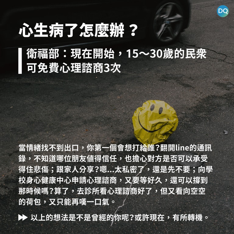 快訊 2023/7/31 地球一瞬 arrow_forward 心生病了怎麼辦? 地球圖輯隊 地球一瞬 李芸 2023-07-31 2023-08-10 bookmark_border 衛福部:現在開始,15~30歲的民眾可免費心理諮商3次。 單篇文章贊助 定期/年度贊助 我們為您在DQ飛行船預留了VIP位子,期待您登船贊助DQ 心理健康 台灣 政策 亞洲 快訊2023/7/31 地球一瞬 【巴黎「最大游泳池」再度開放!告別百年汙染,2024巴黎奧運將於塞納河上登場】【不想跟俄羅斯同天過節 烏克蘭立法更改聖誕節日期】【心生病了怎麼辦?】 arrow_forward 快訊文章列表 展開更多 keyboard_arrow_down (0730更新)巴黎「最大游泳池」再度開放?巴黎奧運:水還太髒,男子鐵人三項必須延期心生病了怎麼辦? 延伸閱讀 收起全部 keyboard_arrow_down 「不OK也很OK」心理健康假成疫外潮流 看不見的傷疤 敘利亞霍爾營地居民的心理健康危機 「吃藥之前,先去看展吧!」瑞士小鎮的心理健康處方箋:逛博物館 當心理健康問題遇上球員的義務 大坂直美宣布退出法網公開賽 心理學家:抱怨有益身心健康 「先別急著冷靜」善用憤怒情緒,助你越級打怪、征服挑戰 揮之不去的童年陰影:研究發現受虐兒身體老化速度快 在監獄種植物會發生什麼事? 從小滑到大的焦慮世代 Z世代憂鬱比例飆升,專家:別讓你的孩子被手機養大 全球最操勞 日本中學教師逾三成達「過勞死線」 分享至社群 close Line DQ Twitter Page Facebook DQ Fans-page 設定個人化文章閱覽樣式 close text_fields 字體大小 2 nightlight 黑暗模式