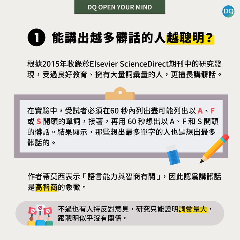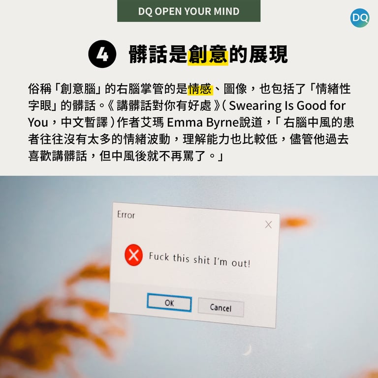 快訊 2023/7/27 地球一瞬 arrow_forward 愛講髒話,象徵什麼? 地球圖輯隊 地球一瞬 李芸 2023-07-27 2023-08-10 bookmark_border 聰明、誠實、忍痛力高、有創意、避免肢體衝突。 單篇文章贊助 定期/年度贊助 我們為您在DQ飛行船預留了VIP位子,期待您登船贊助DQ 研究 語言 髒話 全球 快訊2023/7/27 地球一瞬 【西非政變風雲再起 尼日軍方軟禁總統、封鎖國界】【愛講髒話,象徵什麼?】【「形同階級世襲的特權」哈佛大學「傳承入學」制度遭抨擊】 arrow_forward 快訊文章列表 展開更多 keyboard_arrow_down 西非政變風雲再起 尼日軍方軟禁總統、封鎖國界愛講髒話,象徵什麼? 延伸閱讀 收起全部 keyboard_arrow_down 限制語言自由? 俄國「禁髒話法」上路 研究:試著用外語思考,有機會擺脫「情緒」的影響 語言的高與低 研究:說中文比說英文更動腦 喜歡糾正文法的人有什麼樣的性格? 有沒有用比較重要 那些被偏心的顏色詞彙 手寫、打字、看影片學語言,研究:寫下來效果最好 研究:狗狗可以分辨不同語言 原來雙語牠也略懂、略懂? 澳洲原住民語言新發現 其實源於同一支 在雙語轉換上,關閉舊語言比啟動新語言更需要大腦認知努力 分享至社群 close Line DQ Twitter Page Facebook DQ Fans-page 設定個人化文章閱覽樣式 close text_fields 字體大小 2 nightlight 黑暗模式