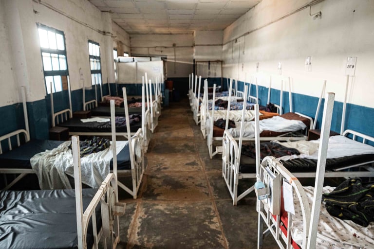 不到30分鐘,擁有100張病床的德羅德羅(Drodro)醫院就空了。病房大門緊閉,一片死寂。