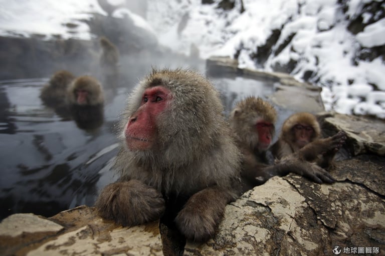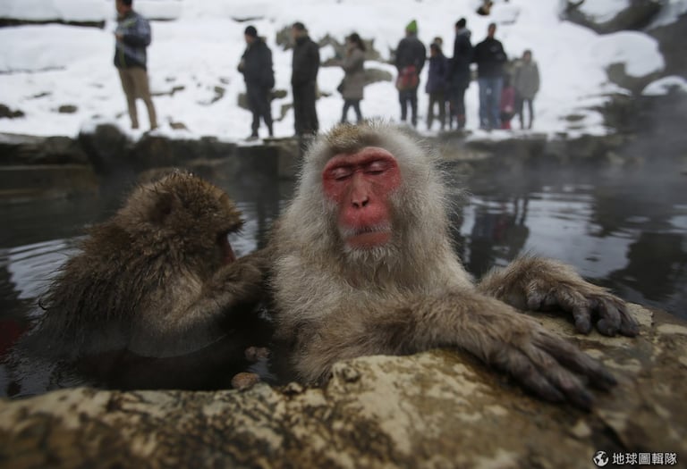 短尾猴的表情生動、跟人泡湯的情況非常相似,這樣的景象每年都會吸引許多人特地前往參觀