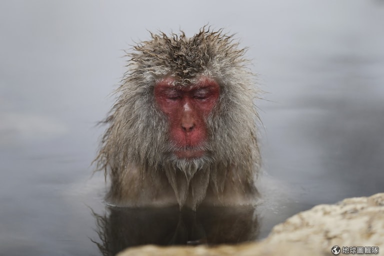 直接在溫泉中閉目養神的猴子