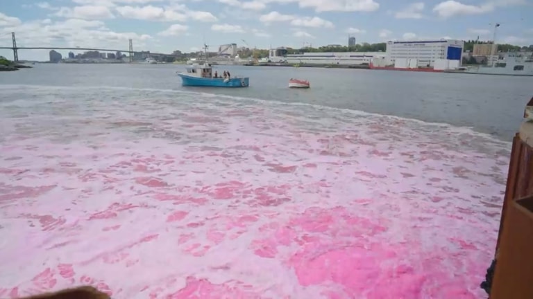 最近如果有經過加拿大哈利法克斯(Halifax)港的人應該會覺得很奇怪,怎麼這座港口的海水突然變成了鮮艷的粉紅色?難不成是被排放什麼奇怪的廢水了嗎?