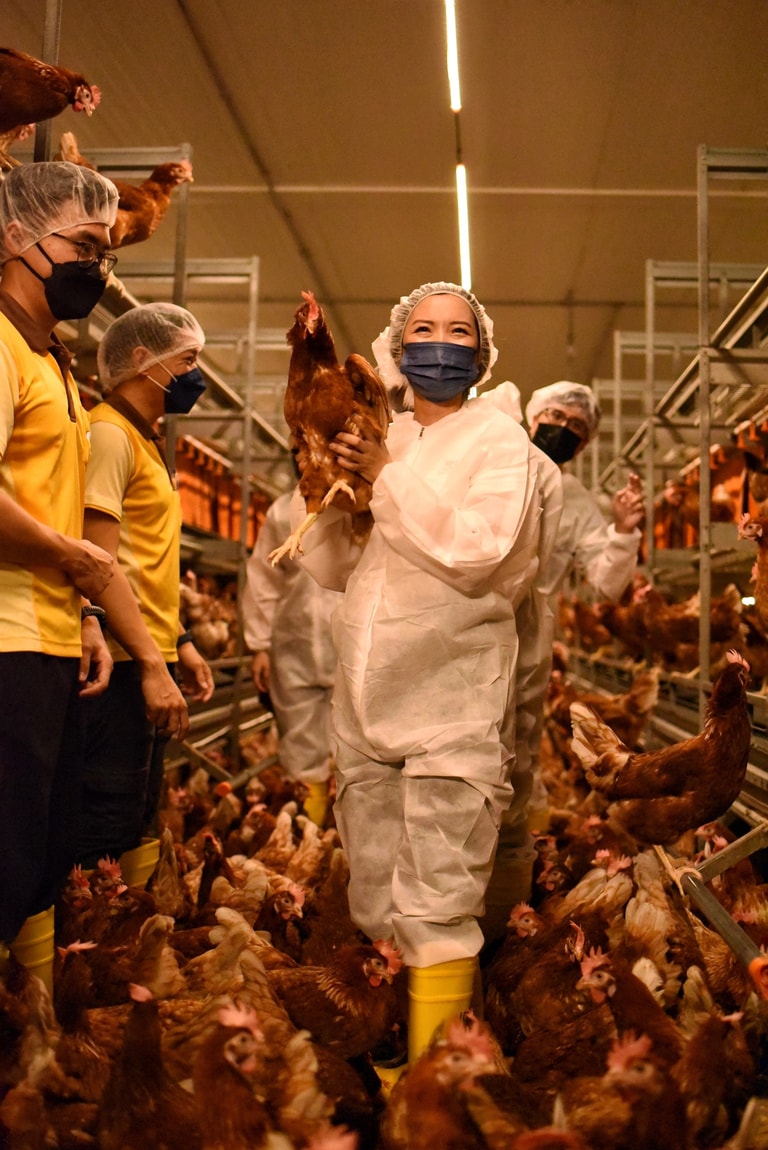 其中最大的蛋雞農場由周氏農業經營,周氏農業有30多年的歷史,農場逐步科技化。發言人鄭燕曦接受《全球中央》採訪時表示,農場2021年遷到新址後,就以最新的養殖科技提升雞蛋產量,從原本一天50萬顆增至80萬顆,目標是今年第四季再往上提升到一天100萬顆。