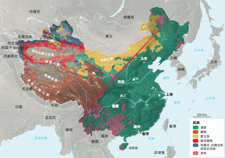 但是,建設高速鐵路網,美其名是要打開偏鄉的大門,卻也成為漢族積極殖民西部的策略性手段。舉例來說,西藏占中國國土的13%,富含鋰、銅與金礦,而新疆則占中國國土的17%,全國四成的煤礦都聚集於此,外加天然氣跟石油礦藏。西部經過開發之後,今天的拉薩有二成人口是漢人。而新疆穆斯林遭受到的外力壓迫,更是強烈。新疆的首府烏魯木齊,人口有至少四分之三是漢人。透過學校教育,北京強力推動少數民族的漢化。尤其是在2008年西藏發生武裝起義(北京奧運發生在即)之後,中國政府推動漢化,更是不遺餘力。至於在新疆,經過2009年的暴動之後,北京對這個地區嚴加監控,強化鎮壓措施。每20個維吾爾人裡面,就有一個被送進「再教育營」,根據國際特赦組織的估計,約有超過100萬人被送入再教育營。