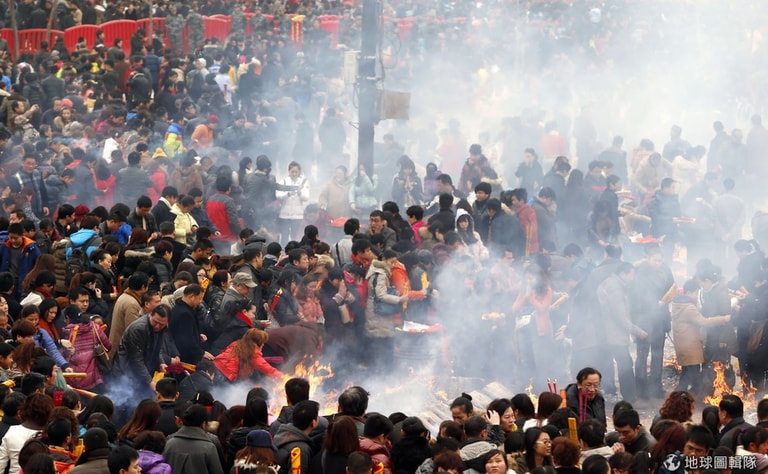 湖北省的桂圓寺在大年初四這天擠滿祈福的人潮
