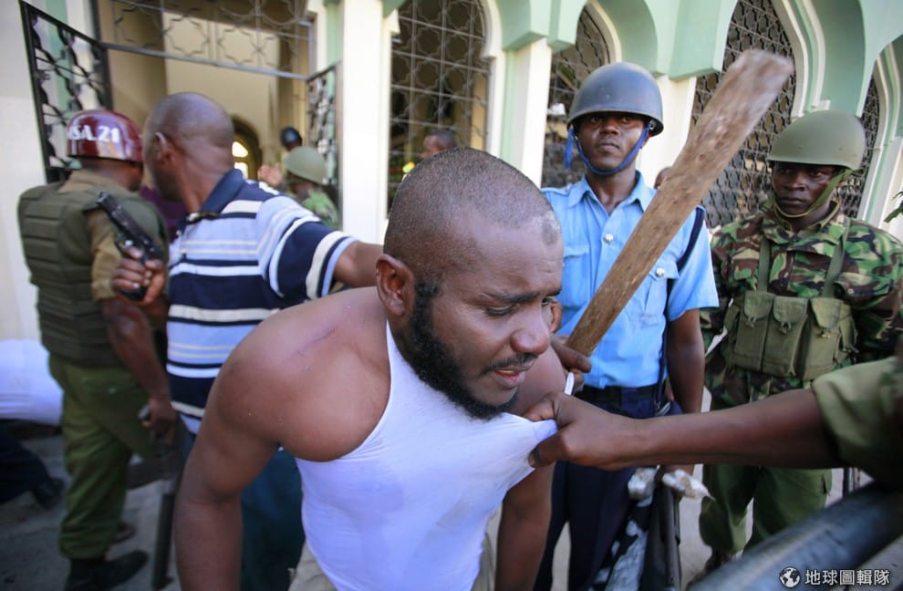 照片中的穆斯林被警方逮捕,根據報導,索馬利亞港灣城是孟巴薩(Mombasa)的一間清真寺前出現大批青年聚集,他們受到索馬利亞宗教激進組織「伊斯蘭青年運動」的招募吸引,大約有超過300位穆斯林青年聚集在當地,之後他們與警方對峙了數小時,並演變成暴力衝突,最後至少100位穆斯林青年被逮捕。一名警察被刺傷後身亡,另有一名警察腹部被刺傷,正在醫院救治。