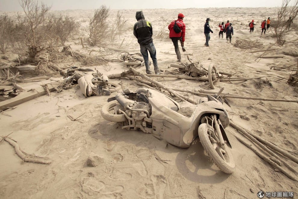 西納彭火山(Mount Sinabung)噴出的火山灰將鄰近地區的建築物品掩蓋。