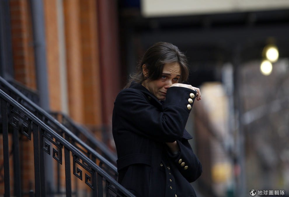 一名不願透露姓名的女性站在霍夫曼在曼哈頓的公寓對面流淚,這名女性僅說她是霍夫曼的工作夥伴。