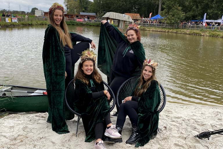 其中,「濕屁股女巫」由4名女子組成,她們披上優雅的披風、戴上花冠,扮演成「森林精靈」的樣子。成員瑪里斯(Marlies Demol)提到,她們去年就曾經參賽,並且拿下第四名。今年她為了參加比賽,特地取消前往奧斯陸的旅行,賽前還與隊員們利用皮艇進行特訓。
