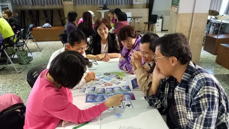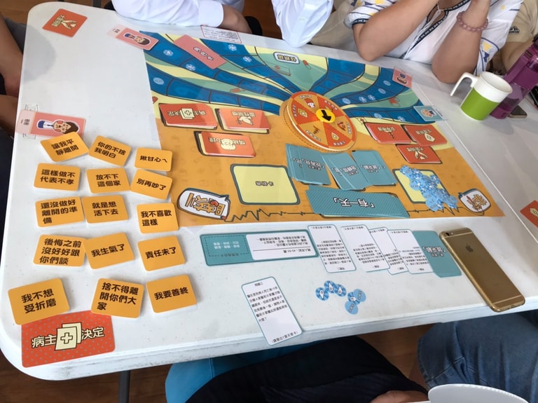 郭慧娟也開發出一系列桌遊,她舉例「告別通關」遊戲,全部都是談身後事,包括治喪地點、棺木款式、喪事金額、葬法、告別儀式、要邀請誰等等,她看到長輩就圍在桌子前,互相討論自己的身後事,甚至拿出紙筆寫下,說要回家與子女討論,「看到這樣的畫面就很感動」。