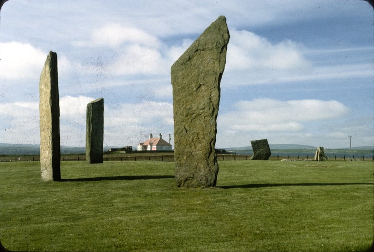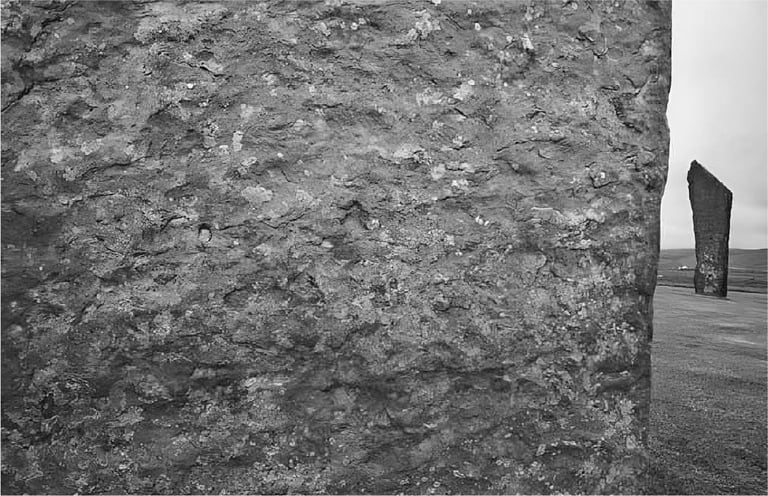 斯滕尼斯(Stenness)是個特別的地方,能讓你的心神感到既自由卻又專注,與高聳的石頭就近接觸,用你的手撫摸它們風化的表面,近距離、仔細地審視,找到十九世紀遊人所刻的名字,以及麥凱上尉裝火藥的小圓孔。