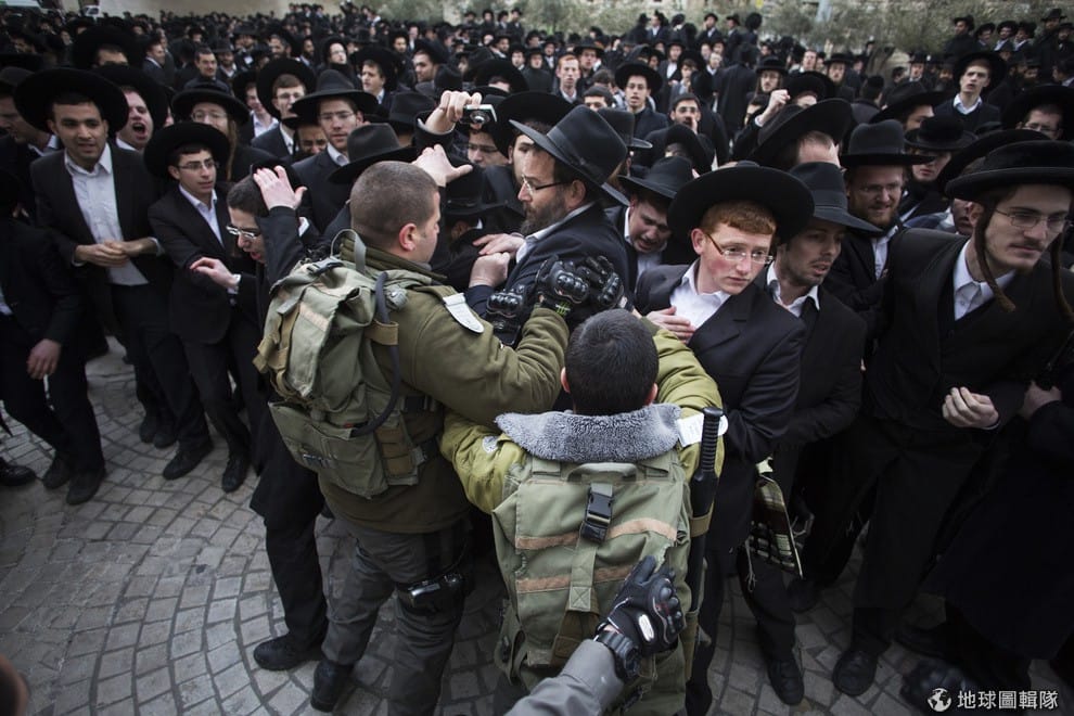 抗議政府刪除學生學費的猶太東正教信眾,他們與以色列員警扭打成一團。這些猶太人主要不滿政府刪掉不當兵學生的學費補助金