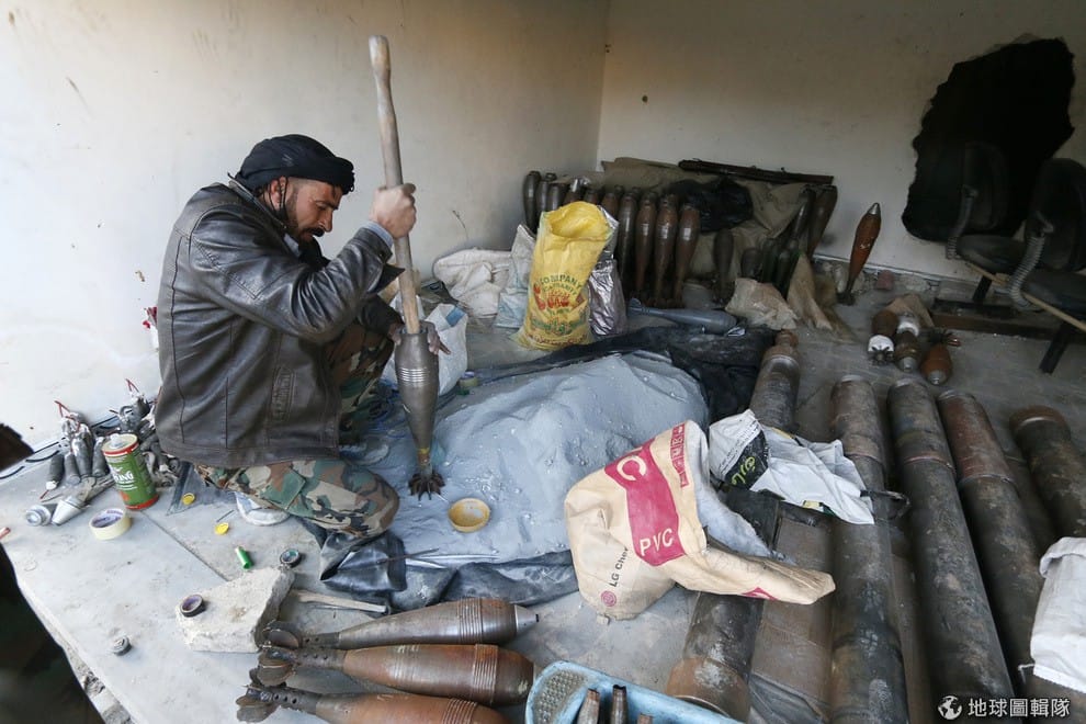 敘利亞大城阿勒坡當地,一名反政府的解放敘利亞士兵正在準備燃燒彈。